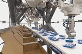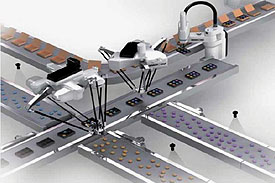 Product transfer operations which are more complex, such as placing parts onto pallets in